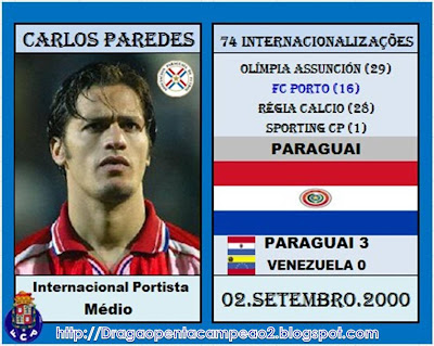 Vou apenas lembrar, já que estamos na rubrica dos goleadores portistas, o seu primeiro golo de Dragão ao peito, obtido no dia 30 de Dezembro de 2000, no Estádio Machado Matos, em Felgueiras, frente ao clube local, em jogo da 5ª eliminatória da Taça de Portugal, com vitória portista por 3-0. Paredes inaugurou o marcador aos 14 minutos e bisaria aos 32, como corolário de uma grande exibição.