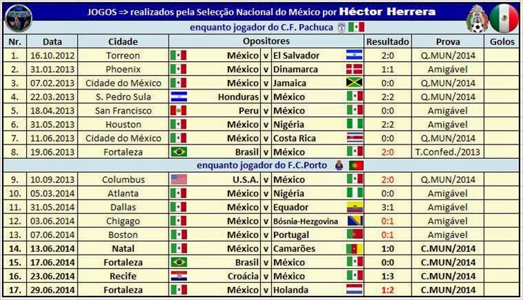 É precisamente o caso deste médio mexicano que chegou recentemente à marca de 13 golos, ultrapassando os que têm sido aqui divulgados com 12 golos obtidos. Herrera atingiu este número ao fim de 92 participações com a camisola do FC Porto, que vem envergando desde a temporada de 2013/14.