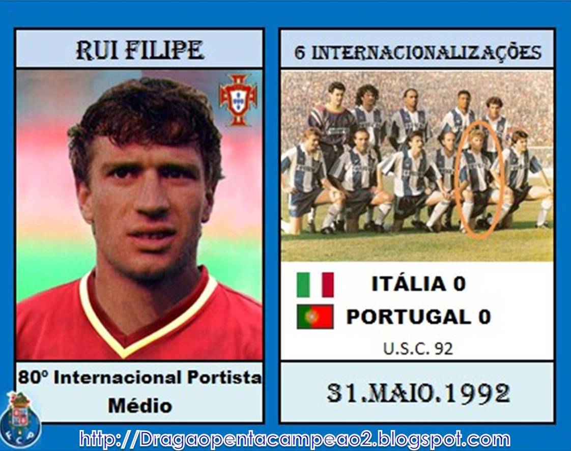Rui Filipe - 80º internacional: Representou a Selecção nacional por seis vezes, com estreia em 31 de Maio de 1992, frente à Itália, jogado nos Estados Unidos, no âmbito do torneio internacional organizado pelos americanos.