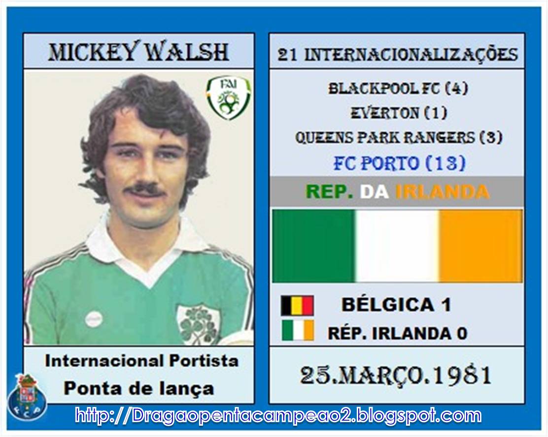 Mike Walsh - Internacional E2: Foi internacional pela Republica da Irlanda por 21 ocasiões (4 pelo Blackpool FC, 1 pelo Everton FC, 3 pelo Queens Park Rangers e 13 pelo FC Porto), concretizando três golos.