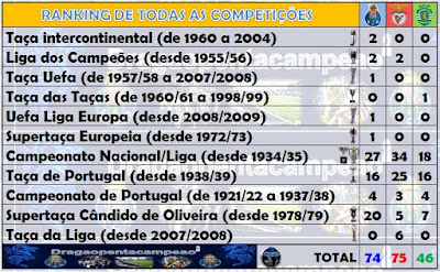O FC Porto é cada vez mais o melhor Clube nacional, desde que Pinto da Costa tomou conta do leme, conquistando na sua vigência 53 títulos dos 69 que hoje possui e lhe dá, pela primeira vez na história do futebol nacional, a liderança do Ranking português.