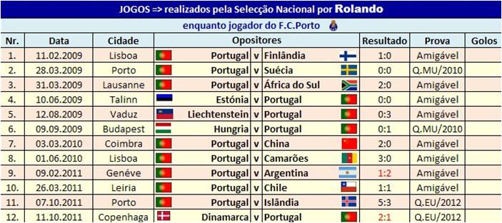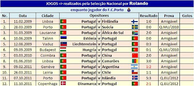 Fontes: European Football - national team matches 1872-2010; Base de dados pessoal de Rui Anjos 2000/Dez.2011