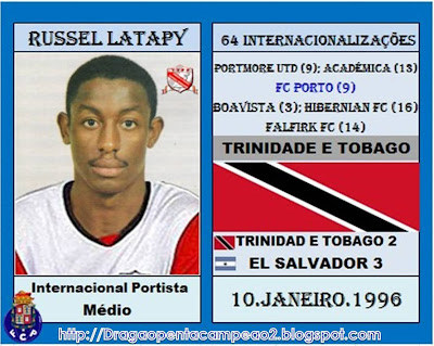 Russel Latapy - Internacional E12: Jogador de Trinidad e Tobago, começou bem cedo, nas categorias de base da selecção quando tinha apenas 10 anos de idade. Aos 15 foi eleito o melhor jogador do país, proeza que repetiria por mais 3 ocasiões. Em 1985, com 16 anos, foi convocado pela primeira vez para a selecção principal. Latapy participou em 64 jogos (9 pelo Portmor Utd., 13 pela Académica de Coimbra, 9 pelo FC Porto, 3 pelo Boavista, 16 pelo Hibernian e 14 pelo Falfirk FC) e apontou 28 golos.