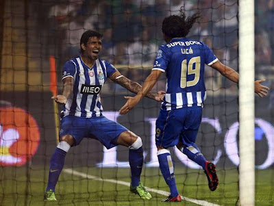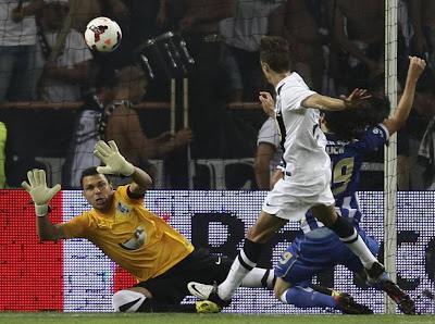 Numa altura em que os azuis e brancos dominavam, foi a equipa adversária a chegar ao golo, num remate primoroso de Falcão. Lance precedido de falta (pé em riste sobre Brahimi), que a equipa de arbitragem deixou passar em claro.